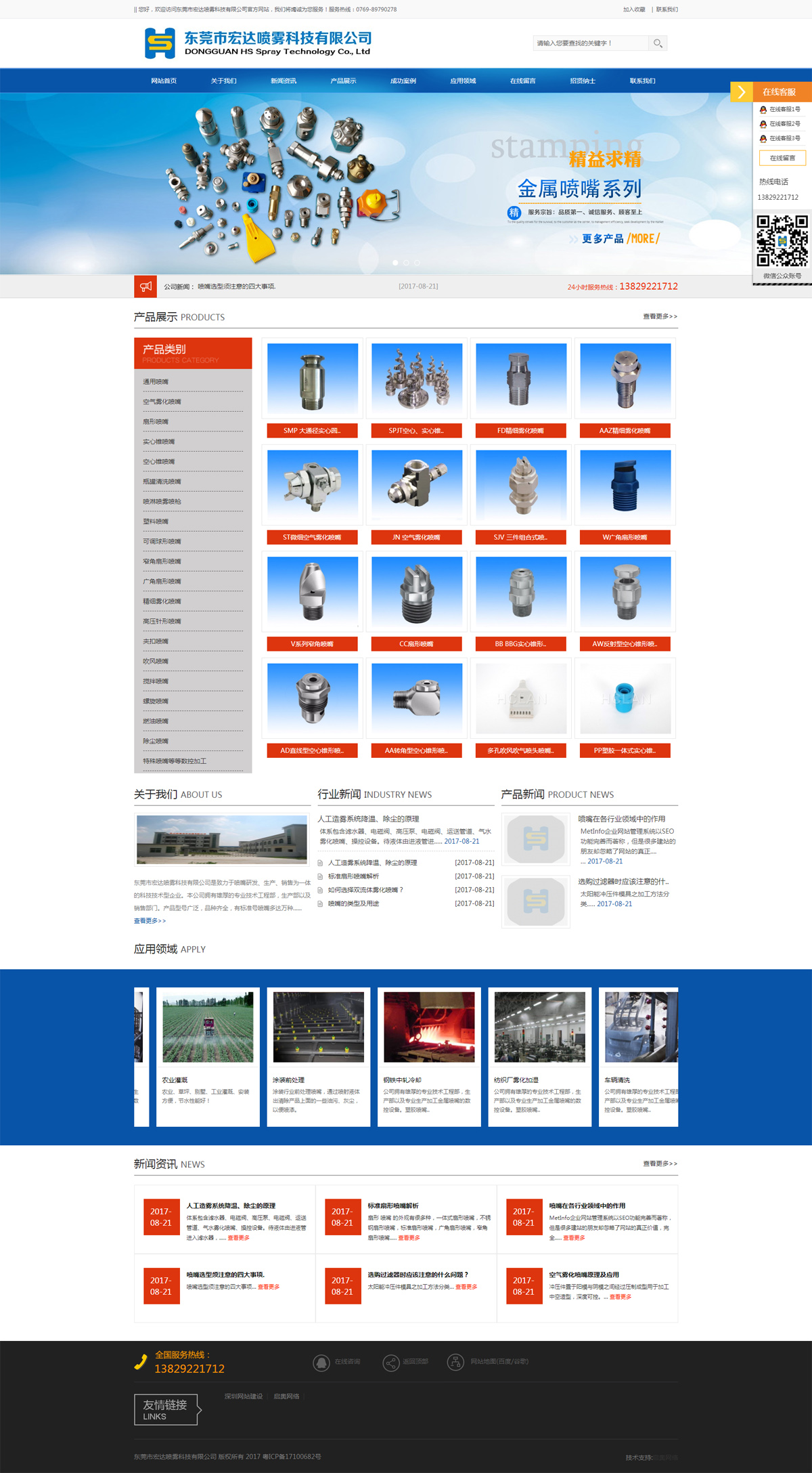 東莞市宏達(dá)噴科技有限公司是致力于噴霧噴嘴研發(fā)、生產(chǎn)、銷(xiāo)售為一體的科技技術(shù)型企業(yè)。本公司擁有雄厚的專(zhuān)業(yè)技術(shù)工程部,生產(chǎn)部以及專(zhuān)業(yè)生產(chǎn)加工金屬?lài)娮斓臄?shù)控設(shè)備。塑膠噴嘴模具成型設(shè)備。產(chǎn)品型號(hào)廣泛,品種齊全,有標(biāo)準(zhǔn)號(hào)噴嘴多達(dá)萬(wàn)種,應(yīng)用范圍覆蓋面廣,如鋼鐵、汽車(chē)、電子、造紙、醫(yī)藥、農(nóng)業(yè)、環(huán)保、食品、涂裝...